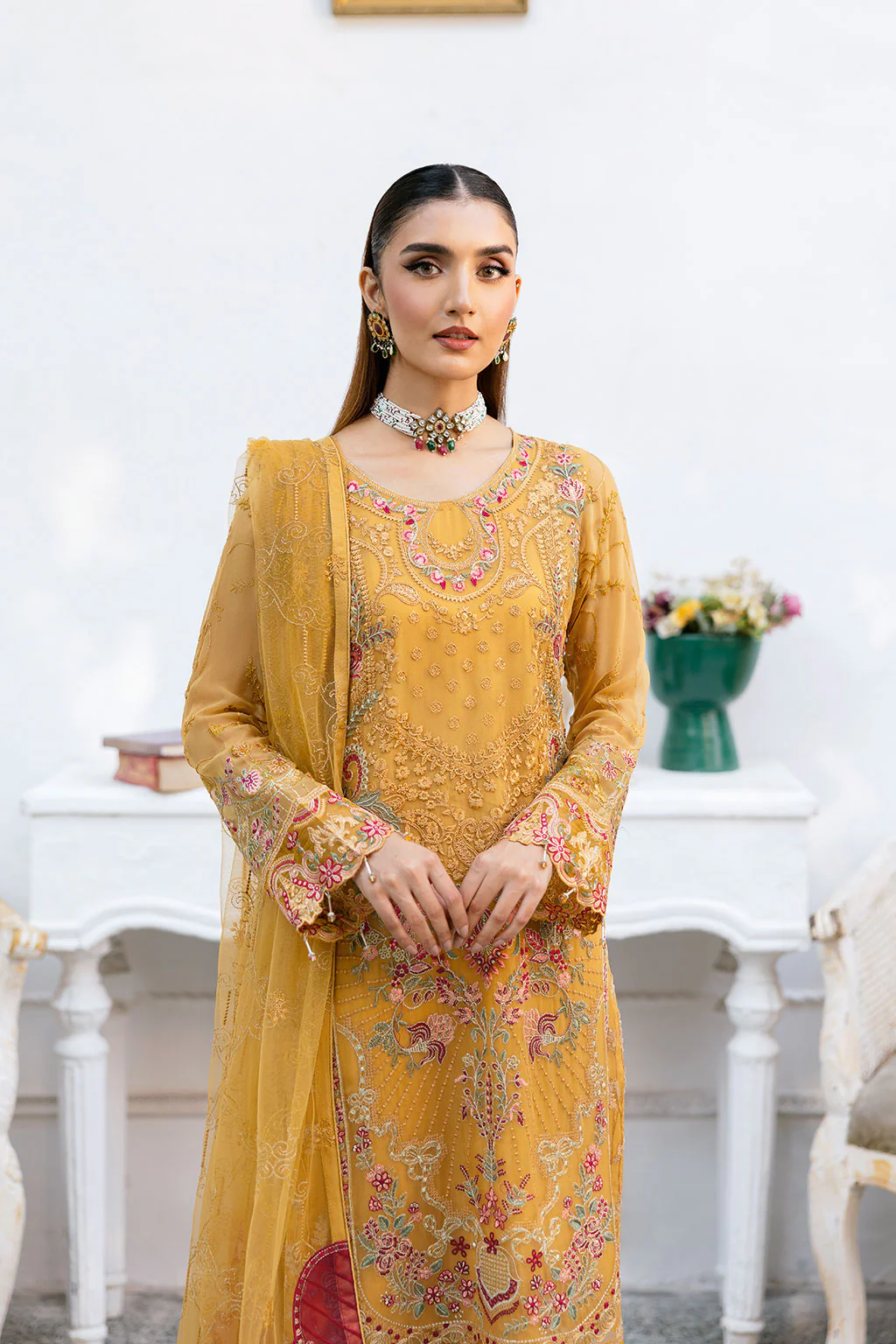 Embroidered chiffon front with Sequence