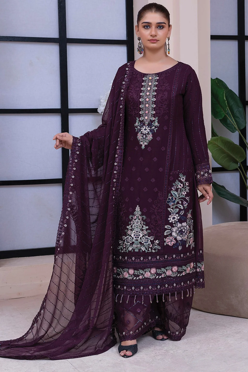 Deep Plum Embroidered Chiffon Suit for Women – 3 Piece Formal Wear