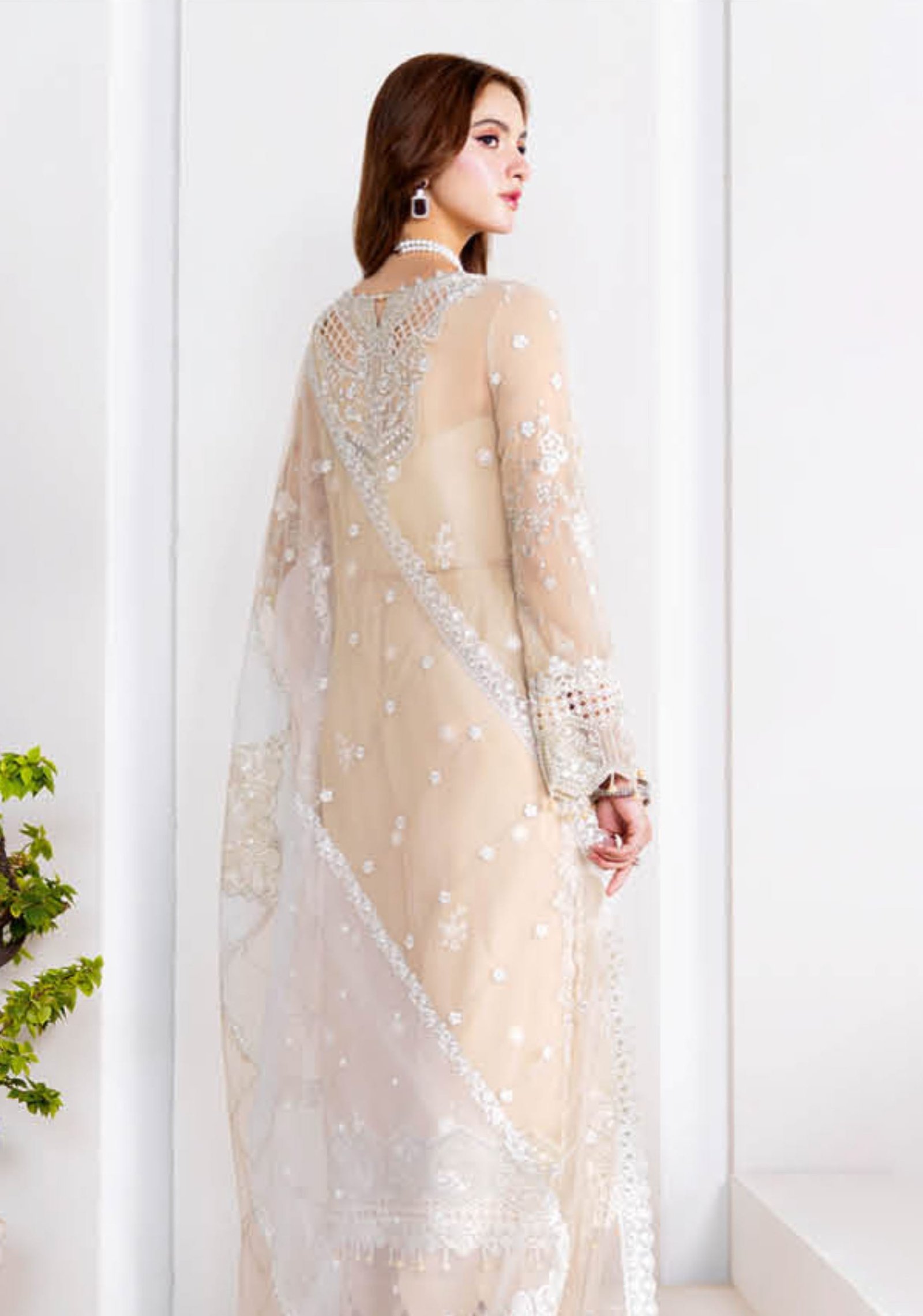 Ivory Elegance – Luxury Embroidered Net Dress (3-Piece Unstitched)
