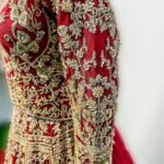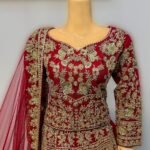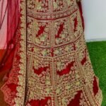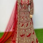 Elevate your bridal look with this exquisite Luxury Bridal Red Lehenga Choli, meticulously designed for the modern bride. Crafted with premium velvet fabric, this lehenga is adorned with intricate golden zari, sequins, and stone embroidery, creating a regal and opulent appeal. The full-sleeve blouse adds a sophisticated charm, while the flowing net dupatta with embellished borders completes the royal ensemble.