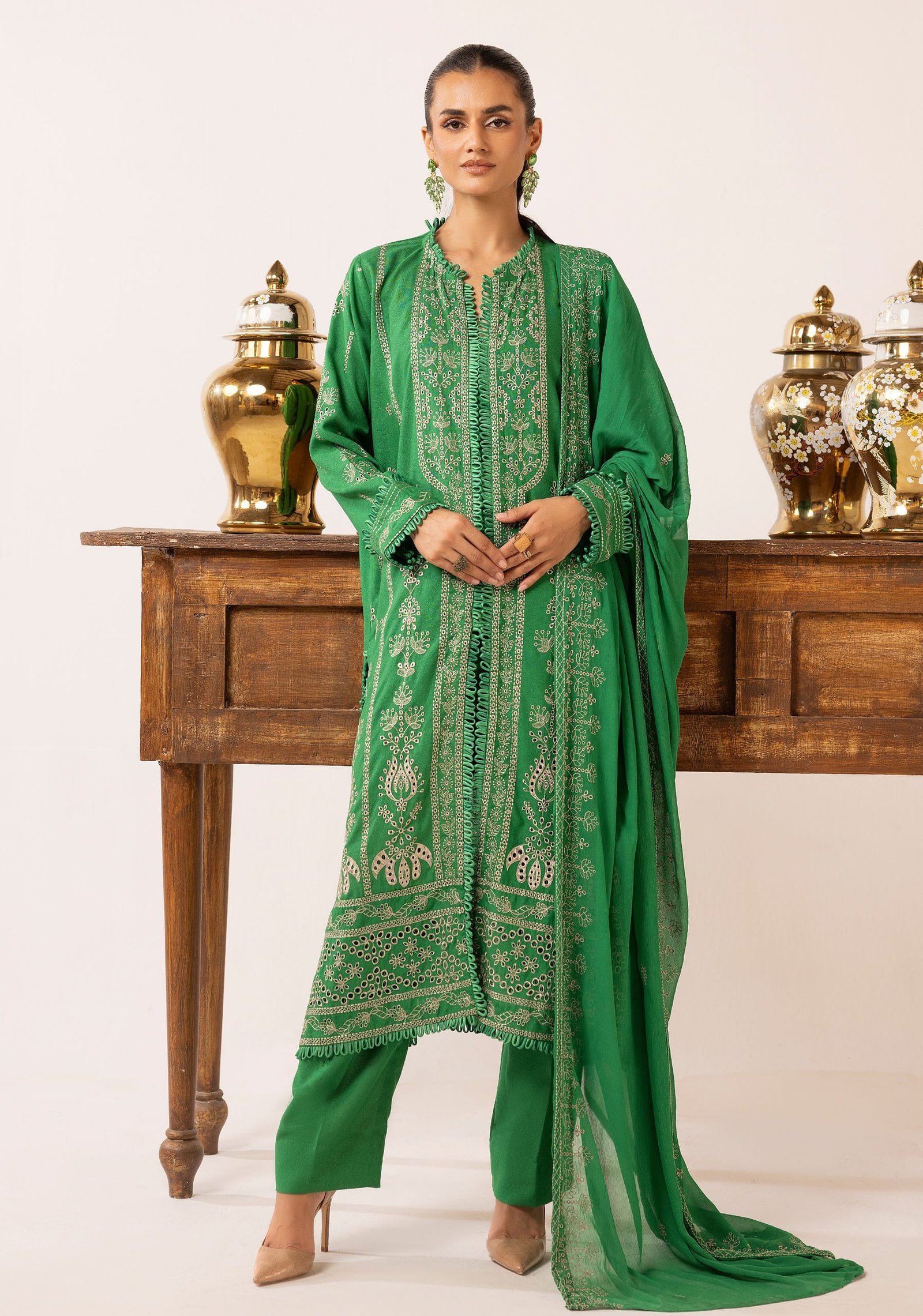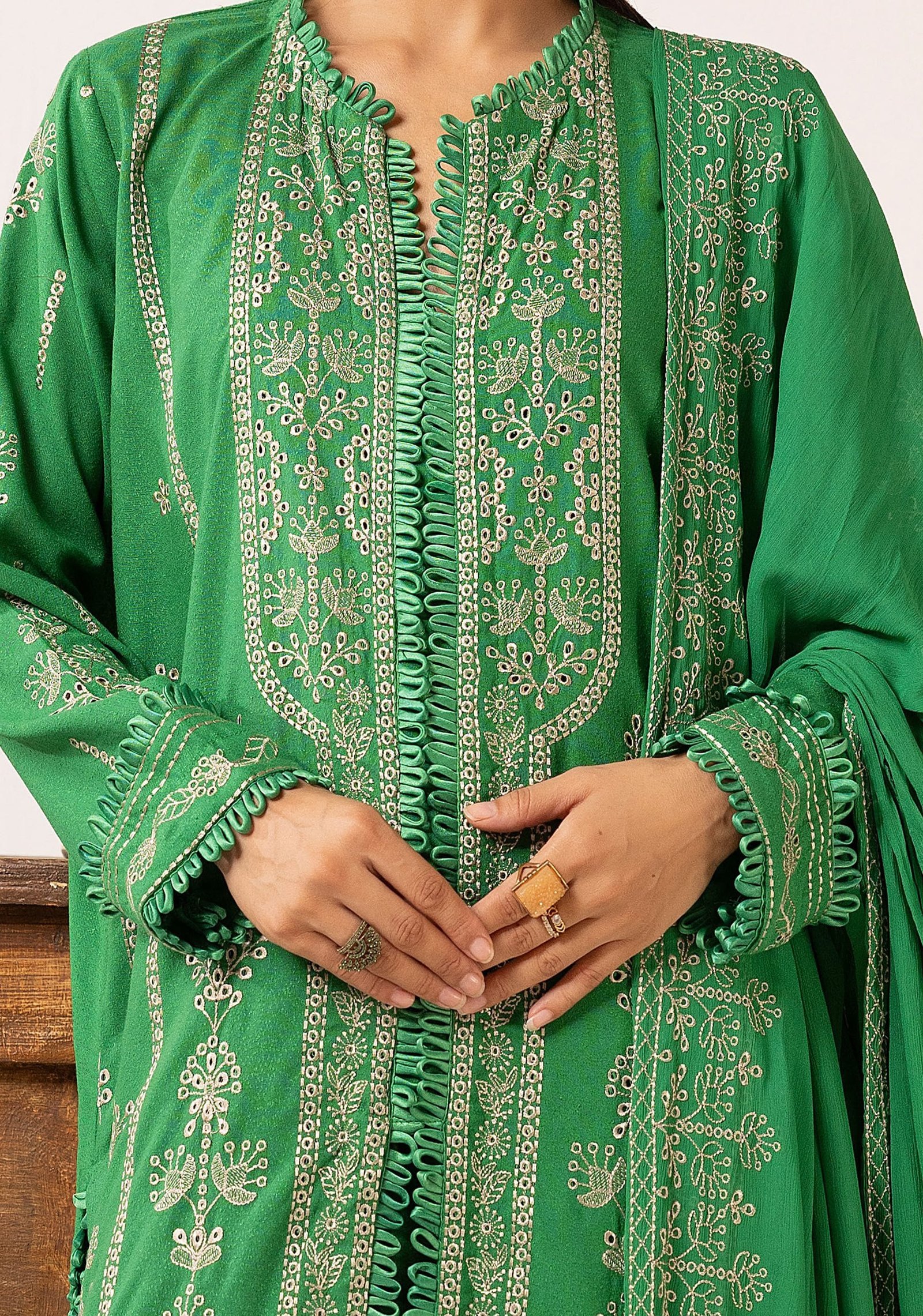 Experience refined elegance with this Luxury Karandi Lawn Shirt paired with a flowy Bamber Dupatta. The soft beige base is adorned with delicate pastel floral embroidery, giving it a graceful and timeless appeal. Perfect for formal luncheons, family gatherings, or festive occasions, this ensemble blends sophistication with comfort.