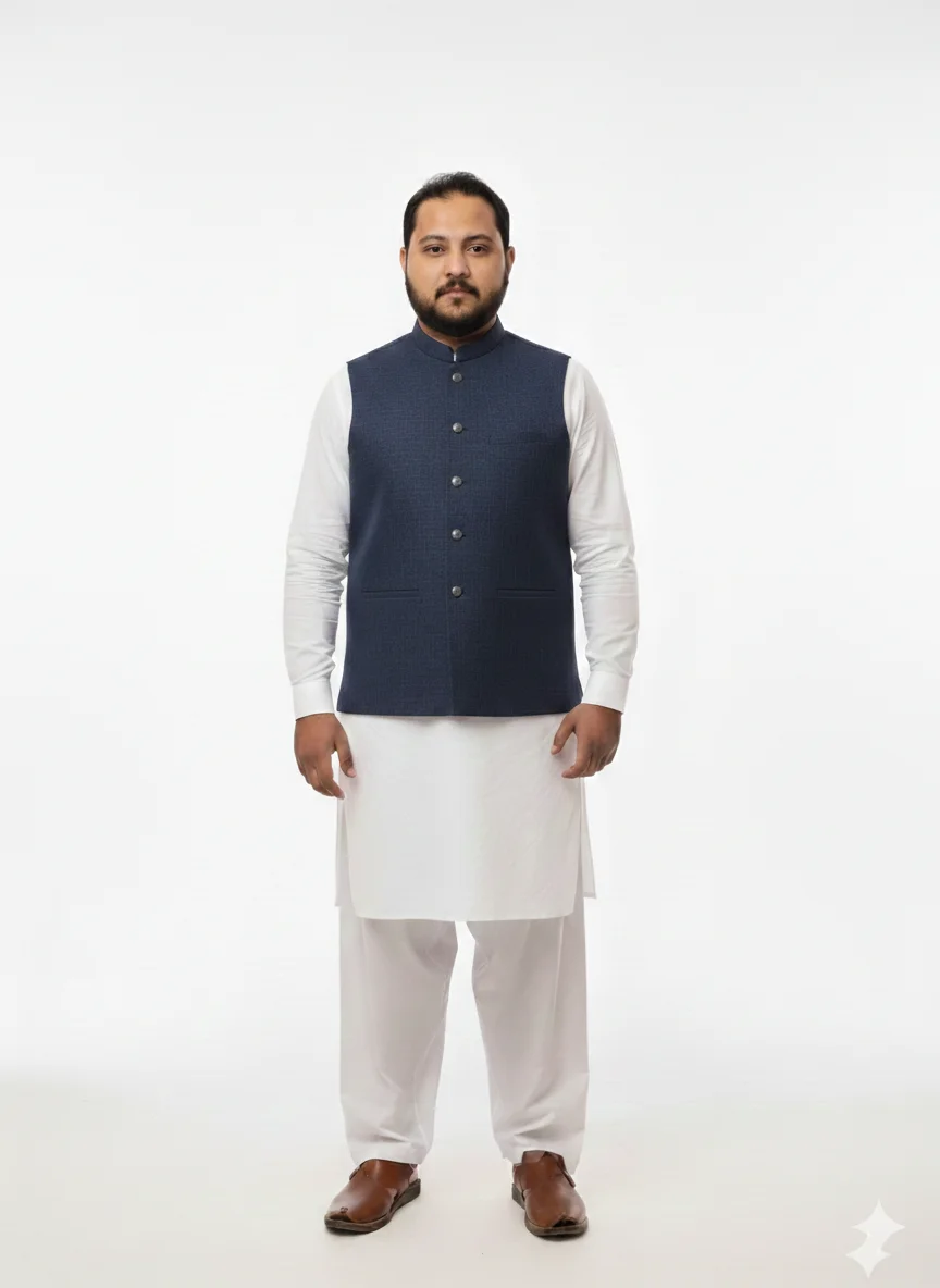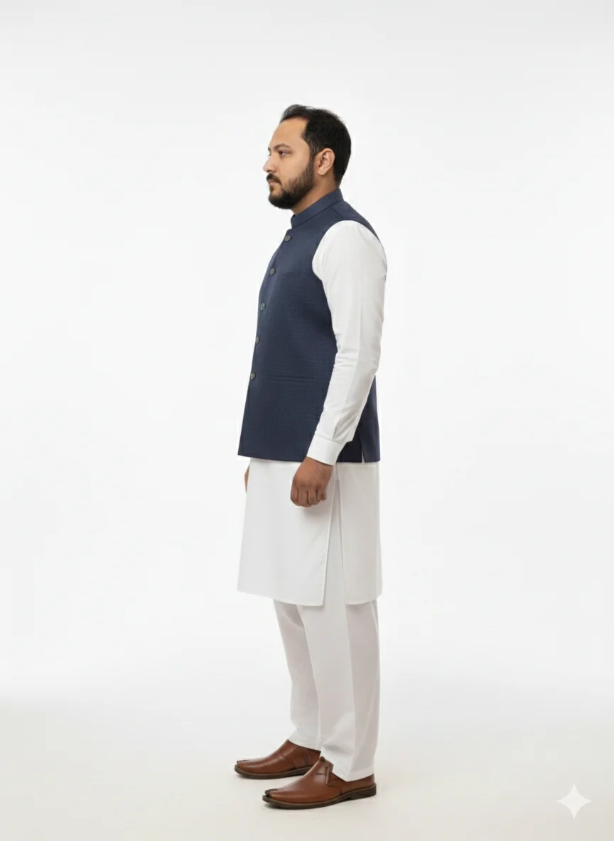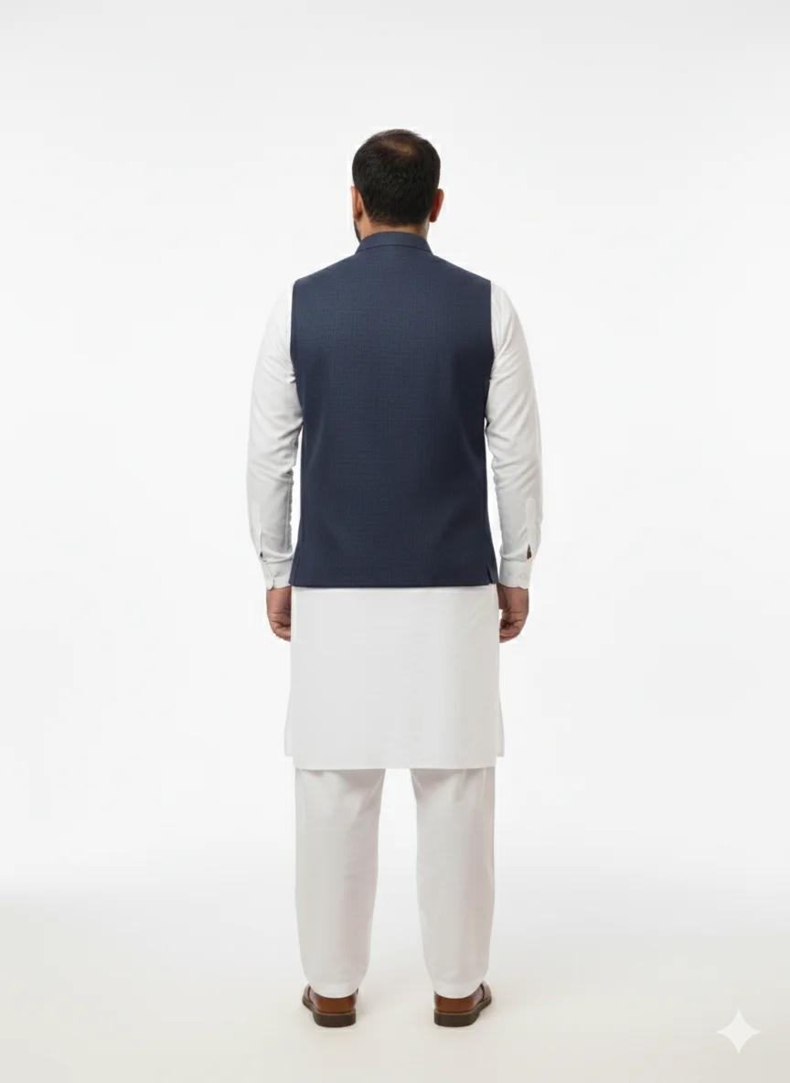 Description: Experience luxury with our Navy Blue Self-Textured waistcoat. Unlike plain vests, the subtle cross-hatch weave gives this piece a premium depth. It’s the ultimate choice for grooms and wedding guests who want a sharp, professional, and elegant appearance.