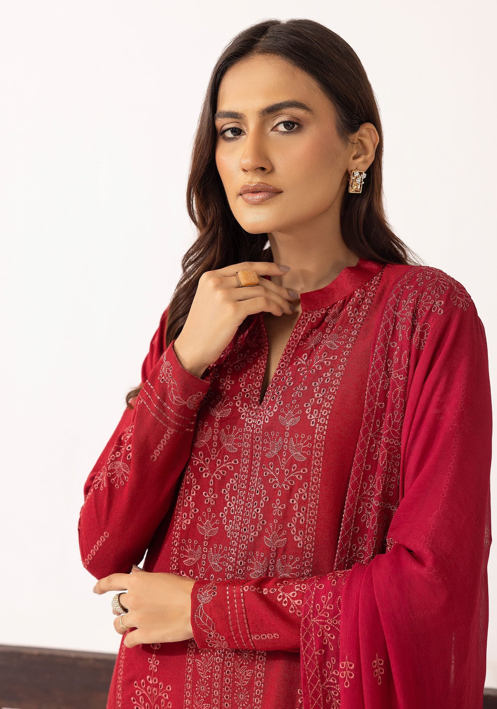 • Dupatta: Sheer Bamber with embroidered detailing