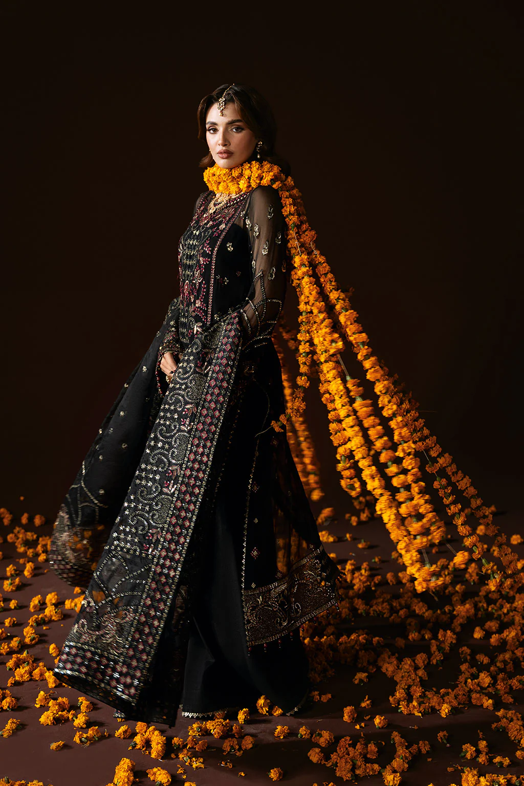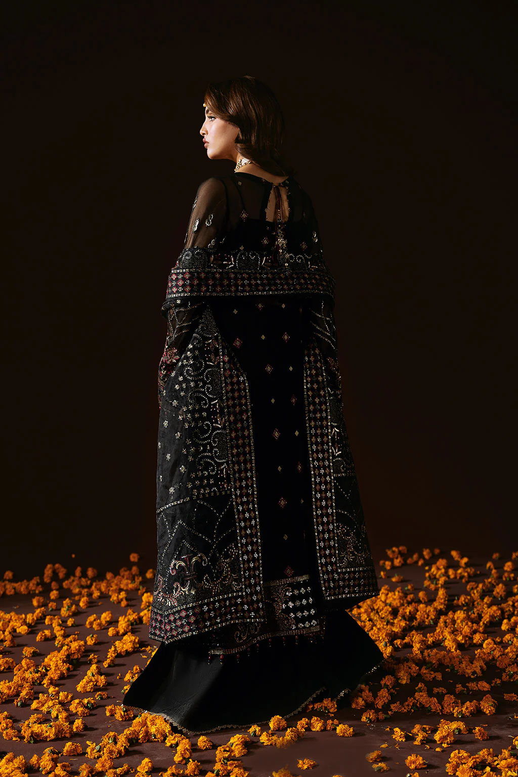 Embroidered Chiffon Back with Sequence
