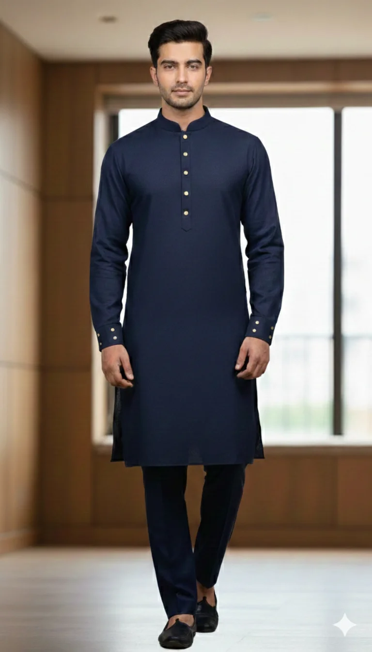 The Royal Navy Blue Wash & Wear is the backbone of a gentleman’s closet. This unstitched fabric is imported-quality material designed to withstand the humidity of Karachi and the heat of Lahore. It possesses a subtle matte sheen that differentiates it from cheap market alternatives. The fabric’s weight is perfectly balancedβ€”heavy enough for a graceful “fall” (drape) but light enough to keep your body temperature regulated. Ideal for office wear, Friday prayers, and semi-formal events.
