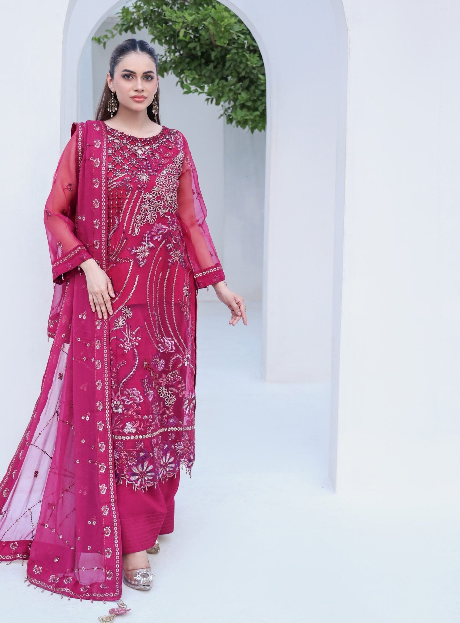 EMBROIDERED CHIFFON FOUR SIDE BODER