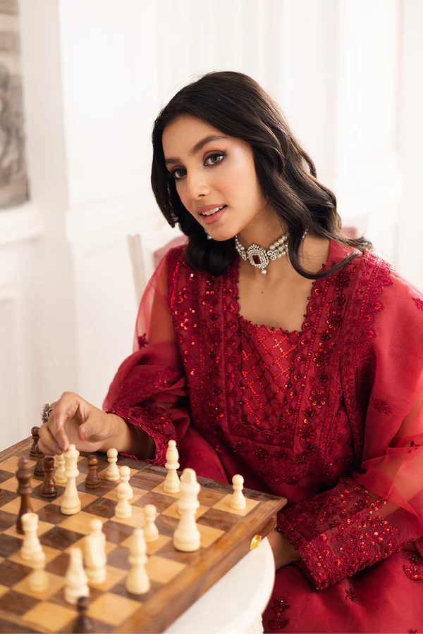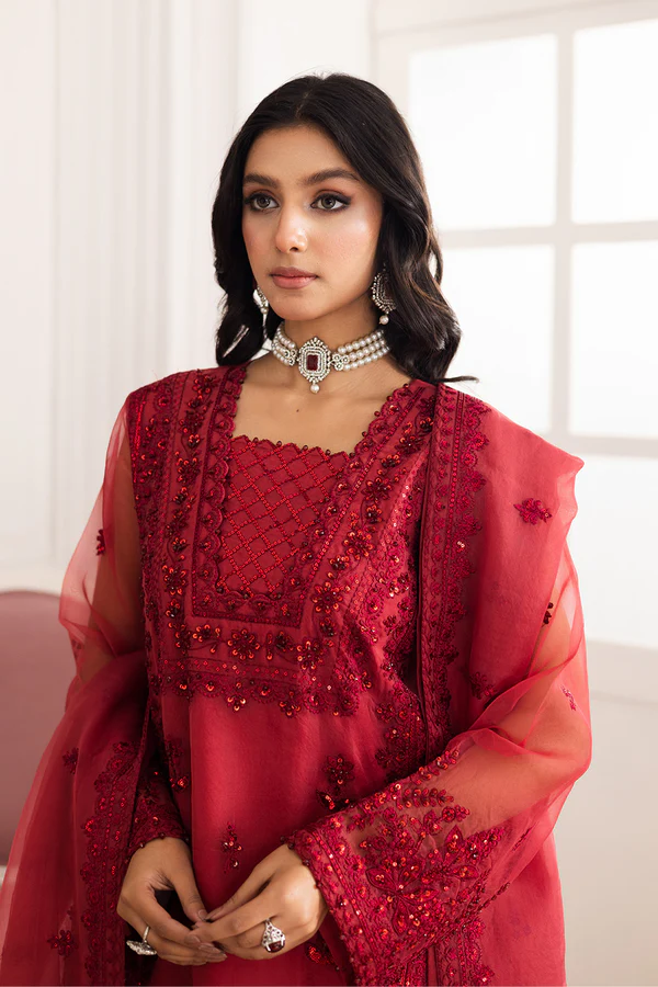 Radiate confidence in this striking 3-piece suit in Aura Orange. The sheer organza shirt pairs flawlessly with a breezy organza dupatta, creating a look of effortless charm. Styled with tailored grip trousers, this ensemble is a perfect blend of elegance and modern flair.